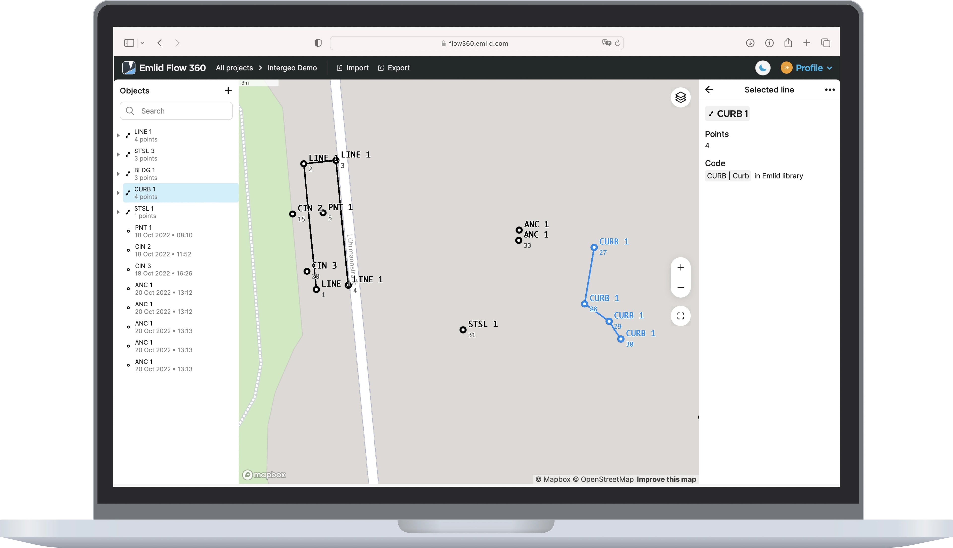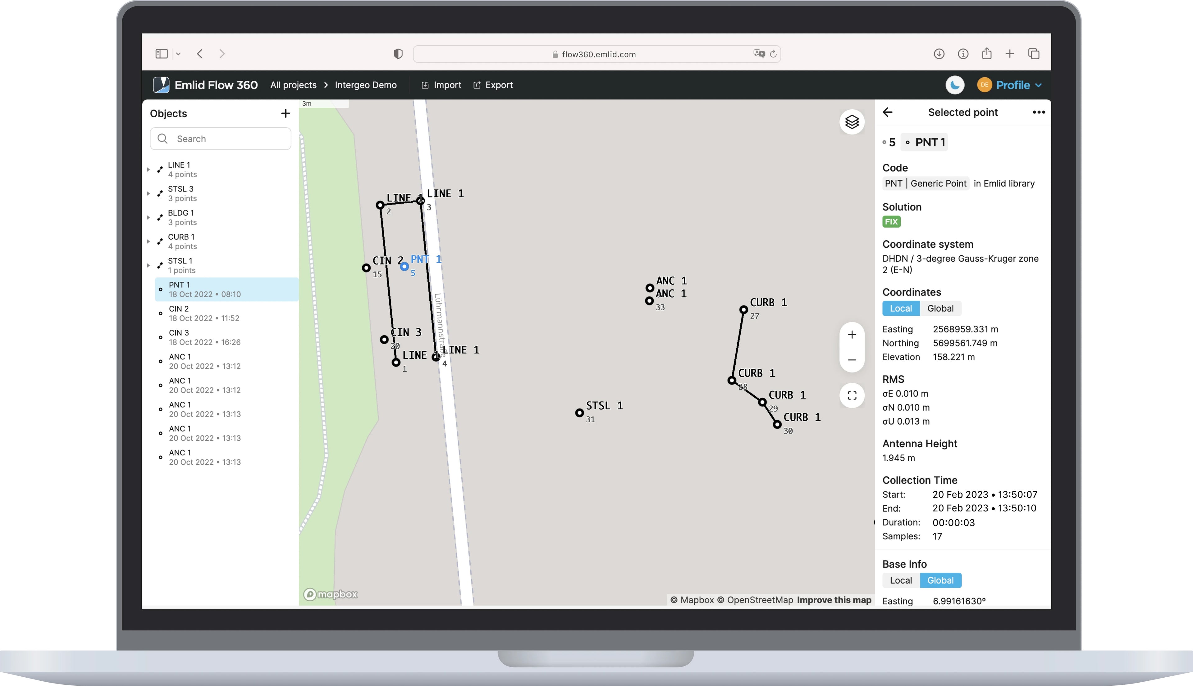 Emlid Flow se ocupă de toată munca de teren păstrând în același timp datele dvs. sincronizate cu Emlid Flow 360. Accesați proiectele dvs. din browser, gestionați listele de coduri și sistemele de coordonate.
