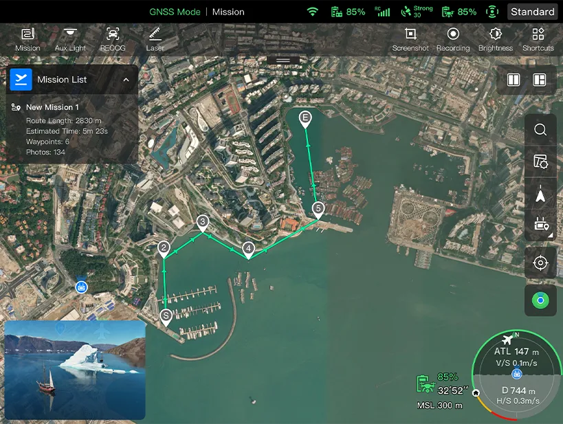 Utilizatorii pot adăuga puncte de referință (waypoints) pentru a defini trasee de zbor flexibile și neconstrânse, adaptate nevoilor fiecărei misiuni.